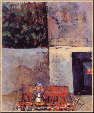 В 1917 г. Мансуров выполнил декорации и костюмы для петроградского артистического кабаре "Привал комедиантов". В первые дни октябрьского переворота он явился к А. В. Луначарскому и предложил представителю новой власти себя в качестве художника. Этот решительный поступок во многом определил в ближайшем будущем связующую роль Мансурова между художественным авангардом и Наркомпросом, который возглавлял Луначарский. В. Е. Татлин, К С. Малевич, М. В. Матюшин, П. Н. Филонов - такие разные в своих теоретических творческих установках - тепло относились к молодому художнику. В долгих спорах с ними рождались его собственные концепции. Вслед за Татлиным Мансуров начал работать на доске, используя ее фактуру как выразительное средство в своих композициях. В 1919 г. он ассистировал Татлину в работе над проектом знаменитой "Башни" - памятника III Интернационала. Идеи "отца русского конструктивизма" об утилитарной экономичности создаваемых форм были созвучны Мансурову,