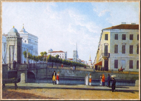 Вид Невского проспекта от Фонтанки на Адмиралтейство. 1809-10. Акварель, тушь