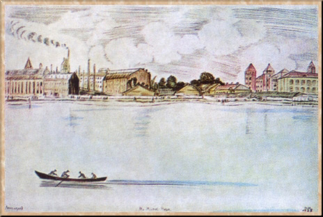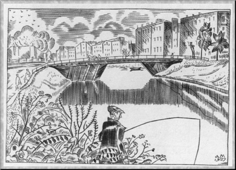 На Малой Невке. 1939. Гравюра резцом, акварель