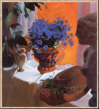 Но парадоксальным образом Чехонин смог оказаться нужным и новому обществу, после того как разразилась социальная катастрофа 1917-го. Жизнь его была теперь еще насыщеннее. Он занимался общественной деятельностью, служил художественным руководителем Государственного фарфорового завода в Петрограде-Ленинграде (1918- 23 и 1925-27). Однако главным для него по-прежнему оставалось собственное творчество. Он заметно изменил свой стиль, привнеся в него динамичность и взволнованность. Этот новый стиль - "советский ампир" (по остроумному определению искусствоведа А. М. Эфроса) - Чехонин использовал во всем, что делал: в книжной и промышленной графике, эмблематике и в многочисленных росписях по фарфору, которые составили интереснейшую страницу в истории этого искусства. Он снова оказался модным, его работы порождали массу подражаний, за ним следовали многие профессиональные художники, и сотни непрофес сиональных оформителей тиражировали его находки по всей стране в бесчисленных лозунгах, транспарантах, заголовках газет и журналов и т. д. С новым чехонинским стилем стала прочно ассоциироваться революционная эпоха - драматичная, но еще способная пробуждать патетические чувства. Эпоха миновала, и Чехонин покинул Россию (1928). Он жил во Франции и Германии, был все так же неутомим, много работал в театре, почти не занимался ни росписью фарфора, ни книжной графикой, зато отлично освоил декоративную роспись тканей, даже сумел изобрести совершенно оригинальный способ многоцветной печати по ткани. Умер он, по-видимому далеко не исчерпав своих удивительных возможностей.