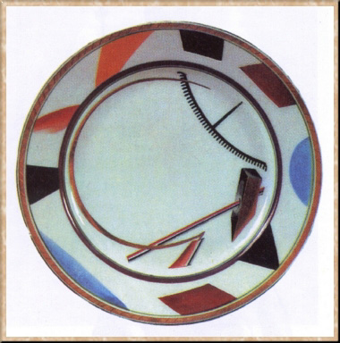 Тарелка декоративная "Кубистическая с молотом". 1922. Фарфор, роспись надглазурная, золочение