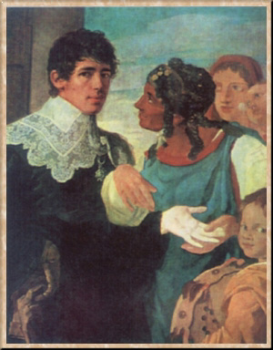 К римскому периоду относится картина "Гадание (Автопортрет с гадалкой)" (1805- 07), стоящая в творчестве исторического живописца особняком. Радость жизни, уверенность молодого художника в своих силах и излучает это полотно, смыкающееся во многом с романтическим направлением в искусстве начала XIX в. До конца жизни Шебуев хранил этот автопортрет у себя.